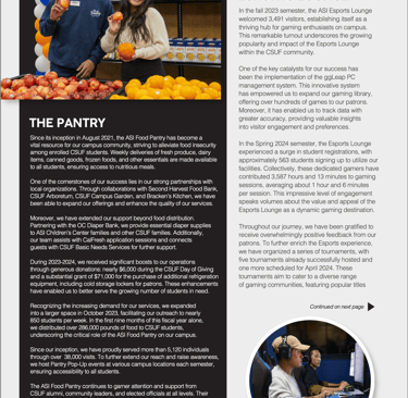 I provided editorial leadership for complex institutional reporting, including the annual budget for a $20M+ university auxiliary. This work required translating detailed financial data into a clear, strategic public narrative while supporting the development team in securing grants and managing donor communications. I directly managed the $410K marketing budget, ensuring resources were aligned to drive mission-critical results.